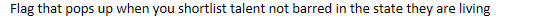 Flag that pops up when TSPs shortlist talent who are not barred in the state they are living